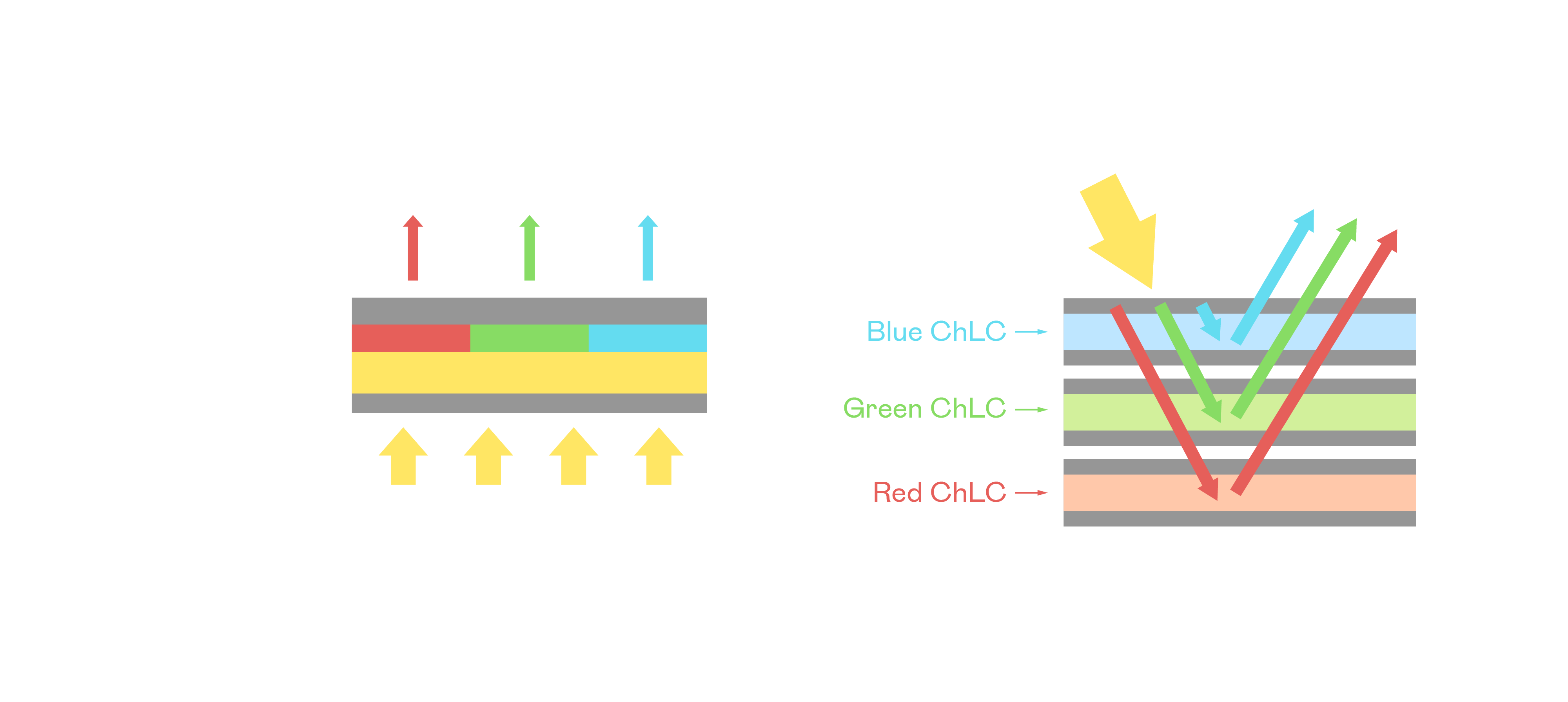AG电子胆固醇液晶显示器是由红、绿、蓝三层胆固醇液晶面板堆叠而成,并采用无彩色滤光片设计,减少环境光在反射过程中的损耗。